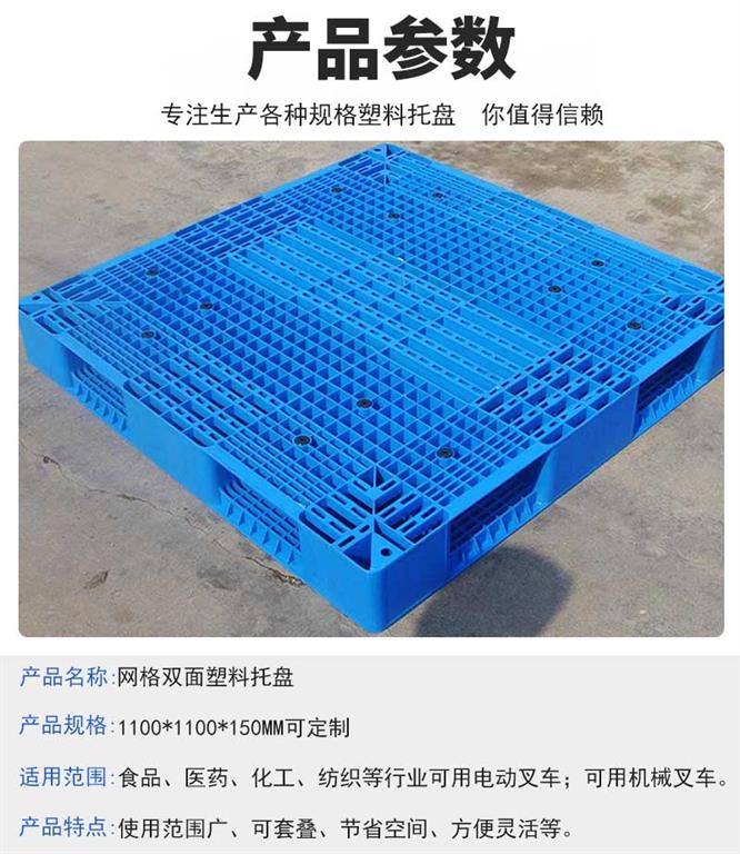 3.雙面網格塑料托盤耐酸堿,耐老化,使用時間長等優(yōu)點;